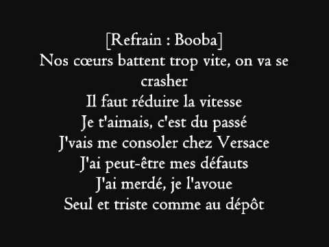 Paroles de la chanson Validée par Booba. IlyasgfaaA la prochaine. Booba Nos cœurs battent trop vite on va se crasher Il faut réduire la vitesse Je taimais cest du passé Jvais me consoler chez Versace.