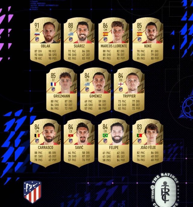 Fifa 22 News On Twitter Atletico Madrid Official Ratings Fifa22 Https T Co Lmvvcms4qx Twitter